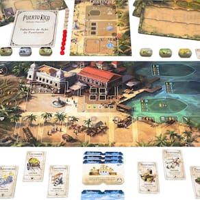 Neste clássico, você assume diferentes papéis, incluindo construtor, comerciante, capitão, garimpeiro e muito mais. Os jogadores são produtores de matérias-primas, como tabaco, banana, café e açúcar. Reforce sua riqueza e reputação construindo cuidadosamente sua cidade, colhendo e comercializando bens e governando estrategicamente a ilha de Porto Rico. O jogador com a ilha mais próspera vence! Uma edição especial, localizada (em pt-br) extremamente polida e de alta qualidade, Puerto Rico 1897 é um dos jogos de estratégia mais icônicos do mundo! Puerto Rico 1897: Edição Especial - Pacote Básico contém um conjunto de componentes padrão, como trabalhadores e caixas de madeira, moedas e navios de papelão, além de todos os stretch goals da campanha.