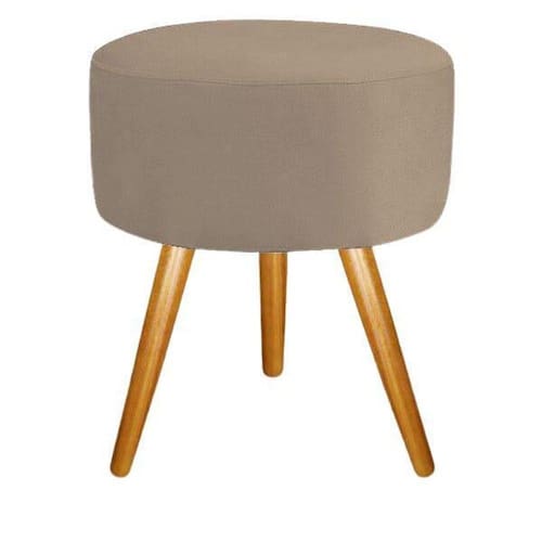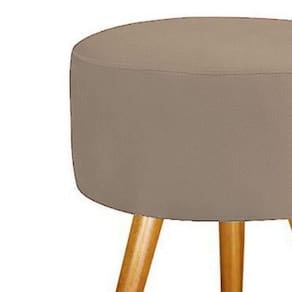 - puff redondo; - estrutura em madeira mdp - acabamento suede; - revestimento em espuma d 26 - 03 pés palito em madeira maciça envernizada - o produto vai com os pés desmontados sendo de fácil colocação (rosqueamento)