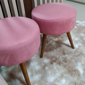 Características do Produto: Material da Estrutura: Madeira de eucalipto oriundo de Área de Reflorestamento/ Madeira Tratada; Chapa: MDP 12mm; Assento: Espuma Densidade 26; Material dos Pés: Pés Palitos em Madeira trabalhada, levemente Inclinados; Quantidade de Pés: 3 Pés; Revestimento: suede Cor: rosa Peso Suportado: até 100 Kg; Conteúdo da Embalagem: 1 Puff; Necessita de Montagem: Produto necessita rosquear os pés; Instruções/cuidado: Limpeza somente com um pano úmido e detergente neutro.