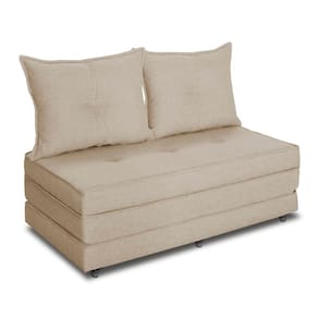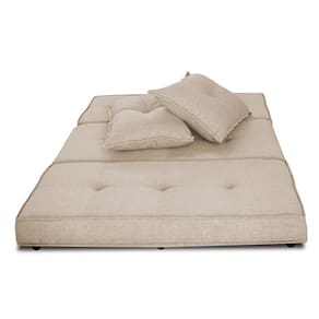 Pufe Cama Dobrável Casal 130 Com 02 Almofadas Premium - Bege