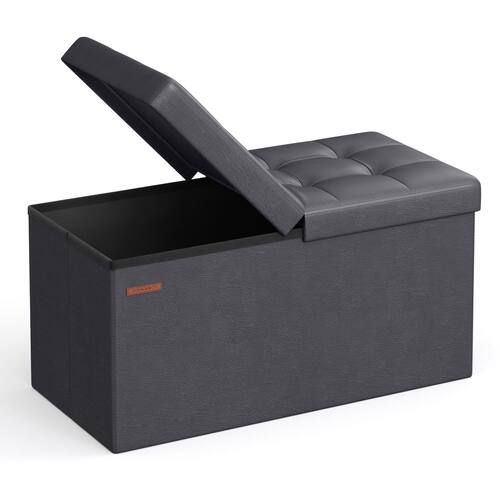 SONGMICS Otomano de armazenamento dobrável, banco de armazenamento, apoio para os pés, 38 x 76 x 30 cm, capacidade de carga de 299 kg, para entrada, sala de estar, quarto, escritório em casa, cinza escuro ULSF045G01