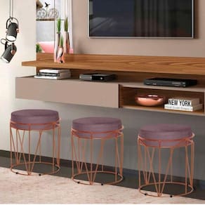 O Puff Aramado Babu Com Armação Bronze Estofado Em Suede é perfeito para você