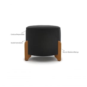 Puff Banqueta Cancún Pés De Madeira Decorativo Veludo Império Preto