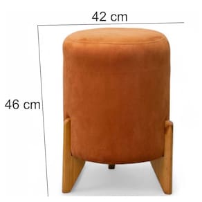 Estrutura: Madeira Maciça de eucalipto de reflorestamentoRevestimento: Tecido Veludo de alta qualidadeFormato: RedondoAssento: Fixo, em espuma D26Pés: Sim, palito de madeira maciça de eucaliptoPeso: Suporta o peso de 100 KilosDimensões do produto montado