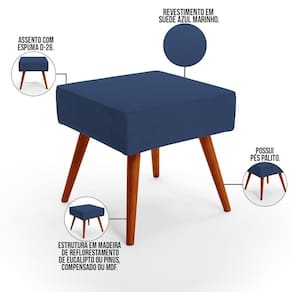 O Puff Banqueta Decorativa com Pés Palito Lívia W01 Suede Azul Marinho - Lyam Decor é ideal para você que busca por elegância e praticidade em sua decoração! Seus pés delicados transmitem suavidade, harmonizando com o assento estofado, que por sua vez é revestido em Suede, tecido de excelente qualidade.