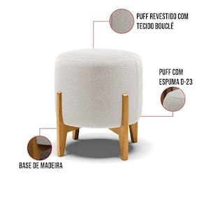 Puff Banqueta Decorativo Base Madeira Stella Bouclê P01 - D'rossi Cor Off White