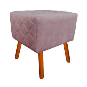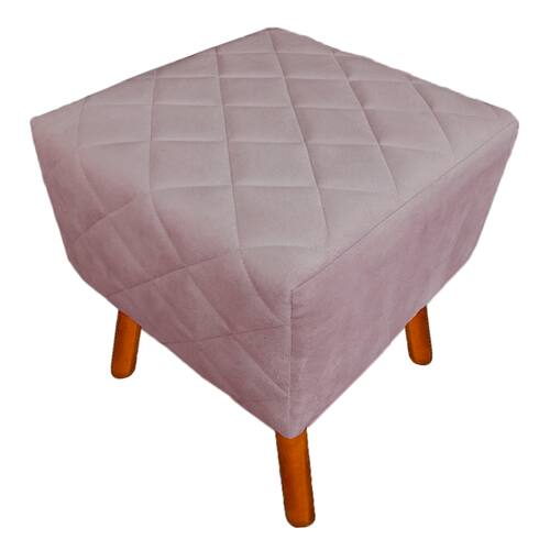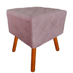 Puff Banqueta Decorativo Em Tressê Isabella Pés Palito Suede Rosê - LM DECOR