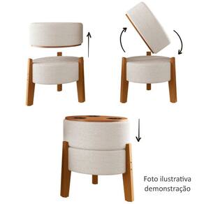 Estrutura: Madeira de ReflorestamentoRevestimento: Tecido LinhoTampo: MDF com porta-coposForma: RedondoSuporta: Peso de 120 KilosPés: Pés de madeira maciça com sapata anti-umidade Diferencial: Pode ser utilizado como assento e girando pode ser utilizado com porta-copos.Dimensões do produto montado