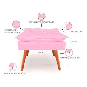 - altura: 52 cm; - largura: 46 cm; - profundidade: 62 cm. O que você está adquirindo: 01 unid. Puff opala com pés de madeira envernizado