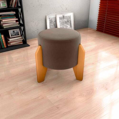 Seu assento é estofado com espuma D20 de alta qualidade, proporcionando maciez e conforto na medida certa. A estrutura combina madeira de eucalipto de reflorestamento e MDF, com fixação em grampos e parafusos, garantindo resistência e durabilidade. Os 3 pés de madeira trazem estabilidade e um toque de sofisticação ao design.