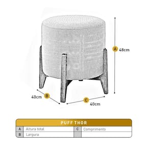 Conteudo da Embalagem: 01 Puff Banqueta Thor Luxo em Madeira Macica Castellar Mobile