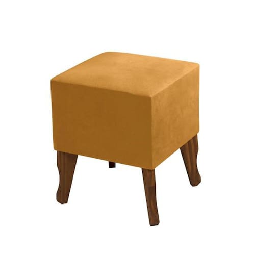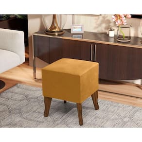 Puff Banquinho Quadrado Pés Madeira Chanel