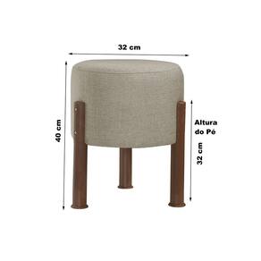 Puff Banquinho Redondo Decorativo Thor em Linho Pés Polietileno Cor Bege