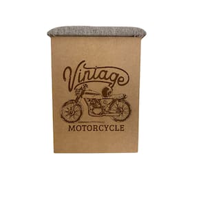 Item: PUFF BAÚ NÃO É SEGREDO MOTO LINHO MARROM MESCLADO 34x32x45