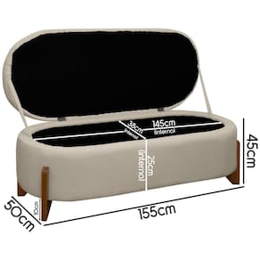 Puff Baú Organizador de Sapatos Thor Para Cama Queen Bouclé O Puff Baú Organizador de Sapatos Thor para cama Queen é a combinação perfeita de funcionalidade e estilo, proporcionando uma solução prática e elegante para o seu quarto. Este móvel versátil não só oferece um espaço confortável para se sentar, mas também adiciona um toque sofisticado à sua decoração. CARACTERÍSTICAS DO PRODUTO: - Estofamento: Espuma D26; - Revestimento: Linho Bouclê; - Material da Estrutura: Madeira de eucalipto de reflorestamento;- Pés em madeira maciça com pintura UV;- Modelo orgânico (curvo), tendência nos lares e comércios! DIFERENCIAS: - Produto de alta qualidade; - Design moderno;- Costura resistente; - Estrutura segura;- Para a limpeza, recomendamos utilizar pano levemente úmido e detergente neutro. DIMENSÕES: Largura: 135 cmAltura: 35 cm Profundidade: 50 cm Peso: 12 kg.VOLUMES, MONTAGEM E GARANTIA:- Uma unidade por embalagem;- O produto chegará montado, sendo necessário apenas parafusar os pés (acompanha os parafusos);- Garantia do fabricante: até 90 dias corridos após o recebimento, contra defeitos de fabricação; INFORMAÇÕES IMPORTANTES:- A entrega do produto é realizada em todo território nacional, até onde as rodovias alcançam.- Objetos decorativos que aparecem na foto não acompanham o produto;- Pode haver diferença de tonalidade entre a imagem e o produto real, por conta de lote de tecido, tratamento de imagens e a calibração de cores do seu monitor;- Por se tratar de estofado as medidas podem ter uma variação em até 3 cm;- Confira as dimensões do produto e certifique-se de que passará normalmente por elevadores, portas, escadas e/ou corredores de sua residência, já que nossa entrega não inclui a subida de lances de escada, ou o içamento de produtos; Marca: Não Informado