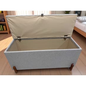 Deixe seu ambiente mais bonito e organizado! Puff baú fabricado em MDF resistente, medindo 100x36x47 cm. Revestido em Linho Premiu, com espuma de 5 cm densidade 28 para mais conforto. Conta com dobradiças reforçadas, iguais às usadas em armários. Fabricado com pés em madeira. Ideal para guardar objetos e dar um toque de charme à decoração!