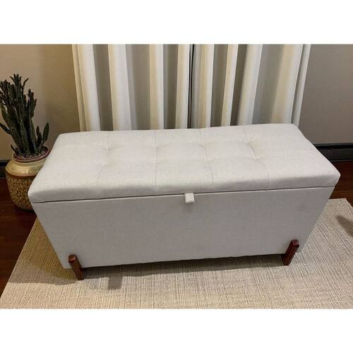 Estrutura em MDF resistente Tecido Linho Premium e elegante Espuma D28 de 5 cm para mais conforto Tampa com dobradiças reforçadas Medidas: 100 cm x 36 cm x 47 cm Decora e organiza qualquer ambiente Marca: Dell Móveis