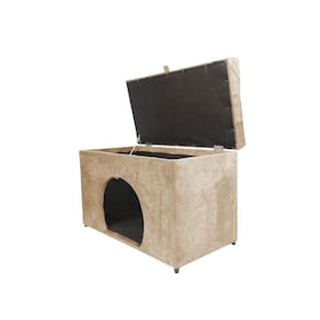 Puff Baú Pet Casa P/ Cachorros E Gatos Em Suede - Bege Escuro
