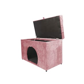 Puff Baú Pet Casa P/ Cachorros E Gatos Em Suede - Rosa Claro