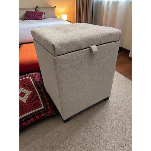 Estrutura em MDF resistente Tecido Linho Premium e elegante Espuma D28 de 5 cm para mais conforto Tampa com dobradiças reforçadas Medidas: 36 cm x 36 cm x 47 cm Decora e organiza qualquer ambiente Marca: Dell Móveis
