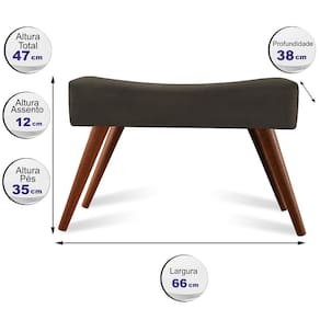 Especificações do Produto: - Possui características, dimensões, acabamento e qualidade de alto padrão; - Fabricado em madeira de Eucalipto; - Tecido suede; - Espuma D-28; - Pés em madeira maciça; - Peso: 05 Kg.