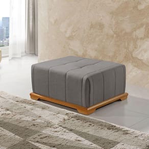 Design Inovador com Base Rente ao Chao: O Puff Quadrado Canada apresenta um design moderno com sua base de madeira rente ao chao, proporcionando uma estetica contemporanea e elegante. A base de eucalipto reflorestado reforca a durabilidade e a qualidade que voce espera.