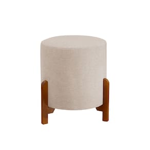 Puff Catânia 3 Pés Veludo Bege Base em Madeira Maciça