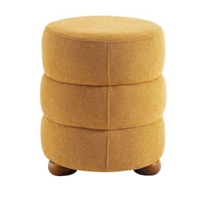 Puff Cherry Boucle 47 Cm X 38 Cm Pés de Madeira Castanho/Gold - Amarelo