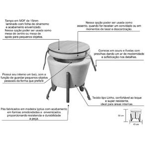 Puff decorativo baú flex tampo para mesa centro zeus cor: linho prata puff decorativo flex zeus estilo e versatilidade são as palavras chaves ao se tratar do puff decorativo flex. Desenvolvido especialmente para ser versátil podendo ter várias funções em um único produto, pode ser montado como puff ou se preferir torna uma linda mesa de centro. Seu tampo de montagem flex possui duas faces, sendo uma delas acolchoada em espuma d33 para oferecer conforto ao sentar e outra com acabamento em mdf para o apoio de objetos e decorações, além de possuir compartimento interno que o permite ser utilizado como baú para organizar o ambiente. O acabamento em linho e cinto de material sintético deixam o produto ainda mais charmoso e único, perfeito para você. Seus pés feitos de madeira agregam personalidade e sofisticação para o seu ambiente. Traços únicos que certamente vão deixar a decoração da sua casa ainda mais elegante. Especificações produto flex: pode ser montado como puff ou mesa de centro altura: 51 cm largura: 47 cm profundidade: 47 cm peso: 10kg assento: espuma d33 detalhes: cinto em material sintético tampo: mdf amadeirado necessita montagem: não