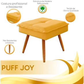 Puff Decorativo Joy Veludo Amarelo Speciale Home Amarelo Com design simples e com otima relacao custo-beneficio, o puff Joy e uma boa escolha para compor diversos ambientes da casa com muito estilo e praticidade, trazendo conforto e beleza para sua rotina. Alem de auxiliar no descanso das pernas e pes tornando o momento ainda mais confortavel. Nao perca essa oportunidade, e adquira ja o seu!! A GARANTIA E DE FABRICA Comprando conosco, alem das vantagens em adquirir um produto de qualidade e sofisticacao, se eventualmente o mesmo apresentar algum problema, dentro do prazo de noventa dias, por sermos os fabricantes, te daremos total assistencia. Queremos lhe proporcionar uma experiencia agradavel com a compra e a certeza de estar negociando com uma empresa que preza acima de tudo, pela relacao de confianca com o cliente, nossa maior satisfacao.