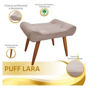 Diferenciais do Puff: Estrutura: fabricado com Madeira Eucalipto Reflorestada, Assento: Espuma D-12 Material dos Pes: Pes Palitos em Madeira trabalhada, levemente inclinados Possui 4 pes de madeira pinus de 30 cm, estilo retro (palito); Design exclusivo no assento; Revestimento em Veludo de otima qualidade; Puff firme e estavel.
