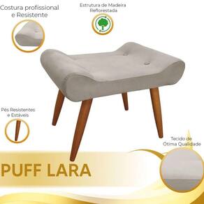 Diferenciais do Puff: Estrutura: fabricado com Madeira Eucalipto Reflorestada, Assento: Espuma D-12 Material dos Pes: Pes Palitos em Madeira trabalhada, levemente inclinados Possui 4 pes de madeira pinus de 30 cm, estilo retro (palito); Design exclusivo no assento; Revestimento em Veludo de otima qualidade; Puff firme e estavel.