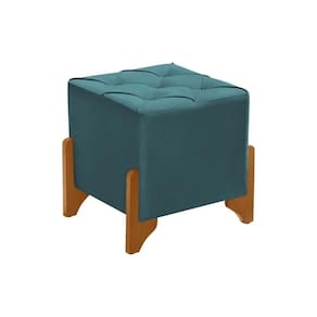 Puff Decorativo Monet Quadrado Base Madeira Maciça Veludo Azul