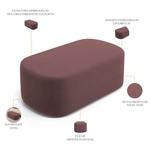 Características: Estrutura em madeira de reflorestamento de eucalipto. Revestimento em Suede na cor Rosê de alta qualidade. Assento com espuma D-26. Peso suportado: Até 120 kg. Pés em sapatas plásticas.