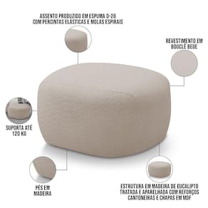 ProductContents: 01 Puff | Altura: 42 | SupplierSimpleName: Puff Decorativo Orgânico Para Sala de Estar Living Barolo L06 Bouclê Bege - Lyam Decor | ProductWarranty: 90 dias após o do produto | ColorSupplier: Bege | Largura: 67 | ColorSimple: Bege | Model: Barolo | Depth Front To Back: 63 | DepthWidthSideToSide: 63 | MaterialFamily: Madeira | OriginCountry: | ColorFamily: Bege | Color: Bege | ProductHeight: 42 cm | ProductWeight: 35 kg | ProductInstructions: Produto para uso em ambiente interno, nao devendo ficar exposto ao sol, calor e umidade excessivos. | Material: Estrutura em madeira de eucalipto tratada. | ProductWidth: 67 cm | Profundidade: 63 | ProductLength: 63 cm | OriginState: PR | SizeDescription: Altura: 42 cm x Largura: 67 cm x Profundidade: 63 cm | Lado a Lado: 63 | Cor: Branco