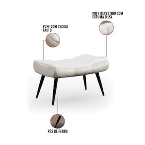 Esse Puff Decorativo é maravilhoso, aconchegante e robusto, feito com madeira de eucalipto e espuma D23 garantindo a qualidade e durabilidade do produto, tecido facto de alta qualidade e pés de ferro que dá um toque retrô e asseguram sua estabilidade. É um Puff Confortável que tem um formato curvo e 45 cm de altura, sendo ideal para apoiar os pés ou servir como assento extra. O detalhe em capitonê dá um toque de sofisticação e requinte ao seu ambiente, harmonizando com diversos estilos de decoração.