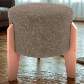 Puff decorativo Luxo, design moderno com um toque de sofisticação para o seu ambiente. Estrutura em Madeira de Eucalipto (de reflorestamento) e MDF, estofado com espuma D20 e revestido em Bouclé (levemente texturizado macio e encorpado). Seu diferencial está nos pés em madeira maciça, com formato geométrico que traz estabilidade e estilo único. Suporta até 110 kg. Este produto será entregue em 01 volume.