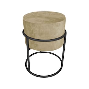 AS IMAGENS SÃO MERAMENTE ILUSTRATIVAS E PODEM SOFRER VARIAÇÕES DE COR E PEQUENOS DETALHES DE ACORDO COM O SEU MONITOR, ILUMINAÇÃO DO AMBIENTE E ATÉ MESMO A SUA PERCEPÇÃO VISUAL.Puff Decorativo Redondo Base De Ferro Preta Tecido Veludo Bege