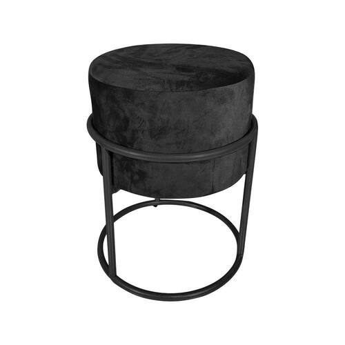 AS IMAGENS SÃO MERAMENTE ILUSTRATIVAS E PODEM SOFRER VARIAÇÕES DE COR E PEQUENOS DETALHES DE ACORDO COM O SEU MONITOR, ILUMINAÇÃO DO AMBIENTE E ATÉ MESMO A SUA PERCEPÇÃO VISUAL.Puff Decorativo Redondo Base De Ferro Preta Tecido Veludo Preto