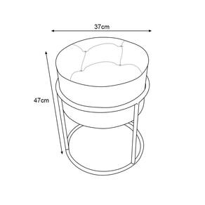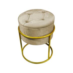 AS IMAGENS SÃO MERAMENTE ILUSTRATIVAS E PODEM SOFRER VARIAÇÕES DE COR E PEQUENOS DETALHES DE ACORDO COM O SEU MONITOR, ILUMINAÇÃO DO AMBIENTE E ATÉ MESMO A SUA PERCEPÇÃO VISUAL.Puff Decorativo Redondo Com Capitonà Base De Ferro Dourada Tecido Veludo Bege