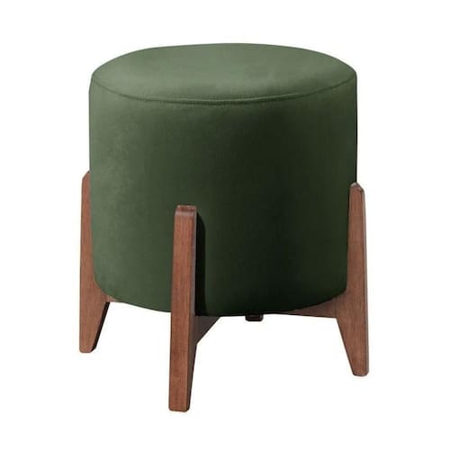 Puff Decorativo Redondo Sala De Estar Eloá Suede Cor:verde