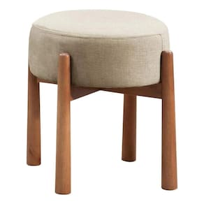 Puff Decorativo Redondo Luxo - Tecido Linho Palha