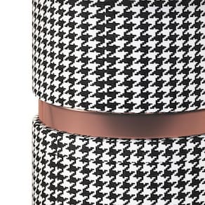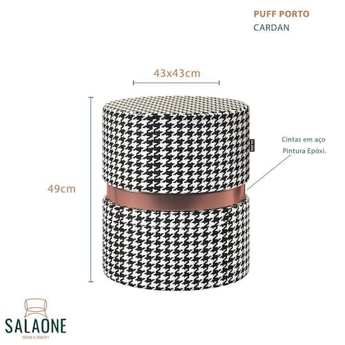Puff Decorativo Redondo Porto - Salaone O Puff Porto conta com design contemporâneo e se encaixa perfeitamente em qualquer ambiente trazendo muito estilo e elegância. Ele conta com cinta de metal e revestimento em couríssimo deixando ainda mais moderno dentro das tendências atuais.