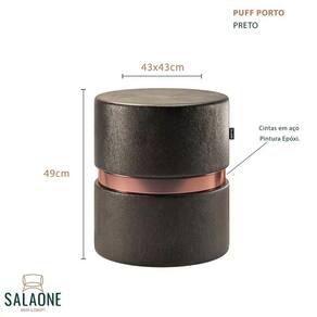 Puff Decorativo Redondo Porto Luxo - Salaone Cor Courissimo Preto
