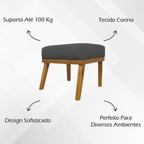 Estrutura em madeira de eucalipto de reflorestamento, garantindo resistência e durabilidade. Revestido em material sofisticado, que facilita a limpeza e traz modernidade ao és de madeira, agregando estabilidade e um design contemporâneo. Suporta até 100 kg, oferecendo e funcionalidade.
