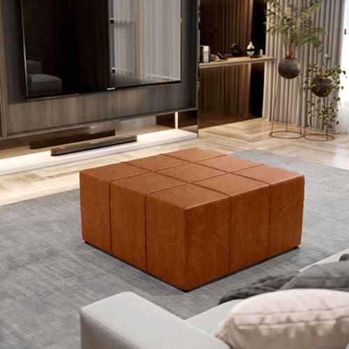 Fabricado com madeira de eucalipto e espuma D-23, este puff oferece uma base sólida e confortável, suportando até 120 kg. O tecido courino não só confere um toque moderno, mas também é fácil de limpar, tornando-o ideal para o dia a dia.