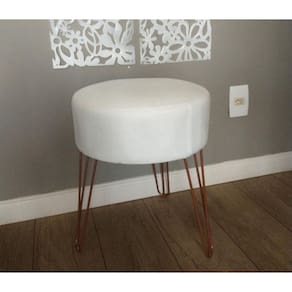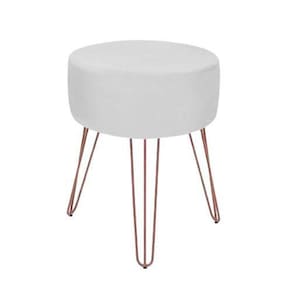 Puff Decorativo Sala De Estar Branco Pés Aramado Rosê Gold