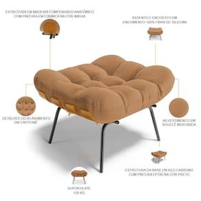 ColorSupplier: Mostarda | Color: Mostarda | ColorSimple: Mostarda | Cor: Bouclê | ProductContents: 01 Puff | MaterialFamily: Madeira, Aço e Fibra | SizeDescription: Altura: 48 cm x Largura: 68 cm x Profundidade: 58 cm | Largura: 68 cm | OriginCountry: | OriginState: PR | Quantidade de pés: 4 | ColorFamily: Mostarda | Model: Costela | Altura: 48 cm | SupplierSimpleName: Puff Decorativo Sala de Estar Costela L02 Bouclê Mostarda - Lyam Decor | ProductLength: 58 cm | ProductWidth: 68 cm | ProductWarranty: 90 dias após o do produto | ProductHeight: 48 cm | ProductInstructions: Produto para uso em ambiente interno, nao devendo ficar exposto ao sol, calor e umidade excessivos. | ProductWeight: 9 kg | Desenho do tecido: Liso | É dobrável: Não | Com pés: Sim | Peso máximo suportado: 120 kg