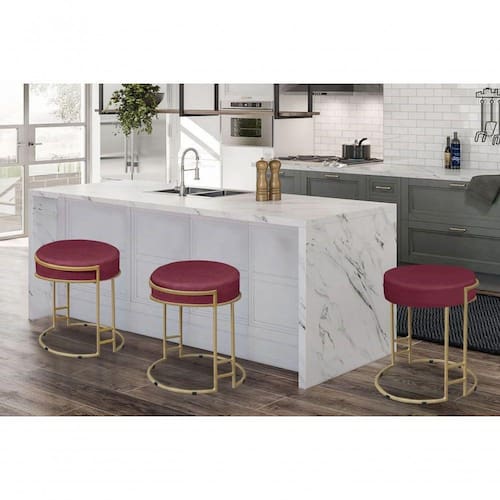 O Puff Decorativo Estofado Sarah Em Veludo Com Base Em Metal Dourado irá te ajudar a compor