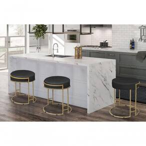 O Puff Decorativo Estofado Sarah Em Veludo Com Base Em Metal Dourado irá te ajudar a compor